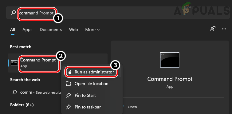 Open Command Prompt as Administrator - Now, right-click on the result of the Command Prompt, and in the mini-menu, select Run as Administrator.