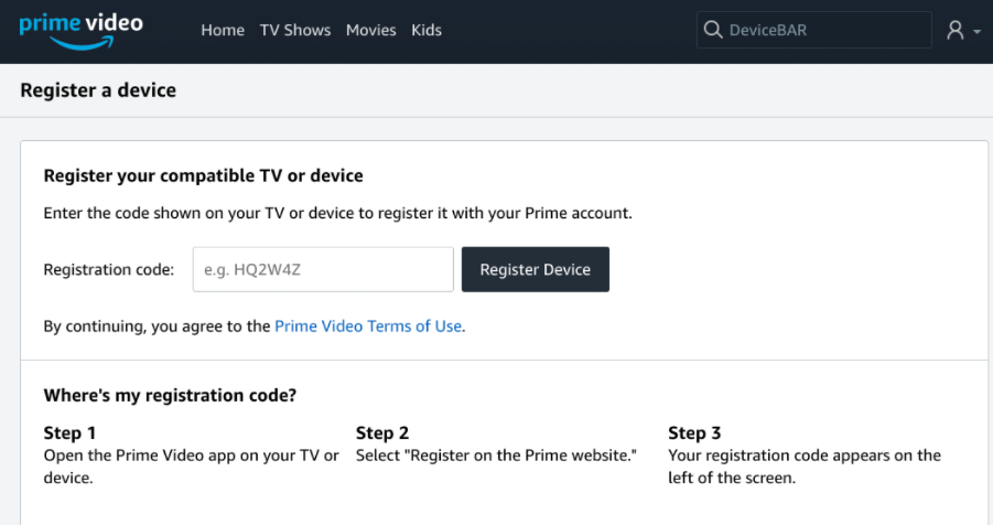- Once you’re signed in, go back to the Registered Devices section and click Register Your Device.