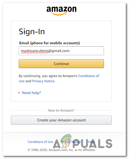 - Go to the Amazon sign-in page and log in with the same account you use for Prime Video.