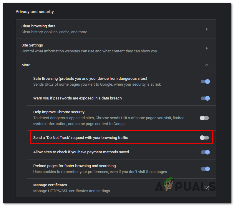 4. Disable ‘Do Not Track’ Request in Chrome (if applicable)