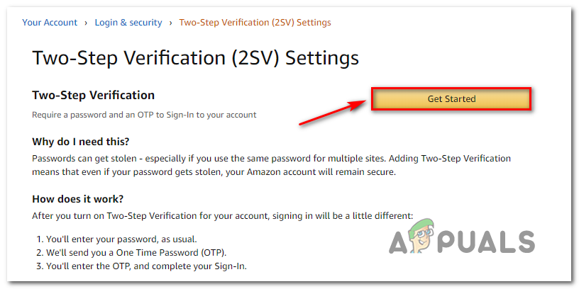- Now that two-step verification is enabled, log out of Amazon Prime and log in again with the new security step. Try streaming to see if the error persists.