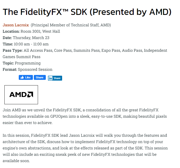 AMD’s appearance at this event is not that surprising since the company has a suite of tools to assist game developers. The FidelityFX SDK (Source Development Kit) offers various technologies for game devs such as FSR, CAS, Ambient Occlusion, Variable Shading, Screen Space Reflections, you get the idea.