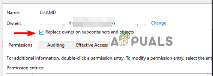 Not having the correct ownership of the AMD installation directory can also lead to update problems. Granting yourself ownership gives you full control over the files and folders needed during installation.