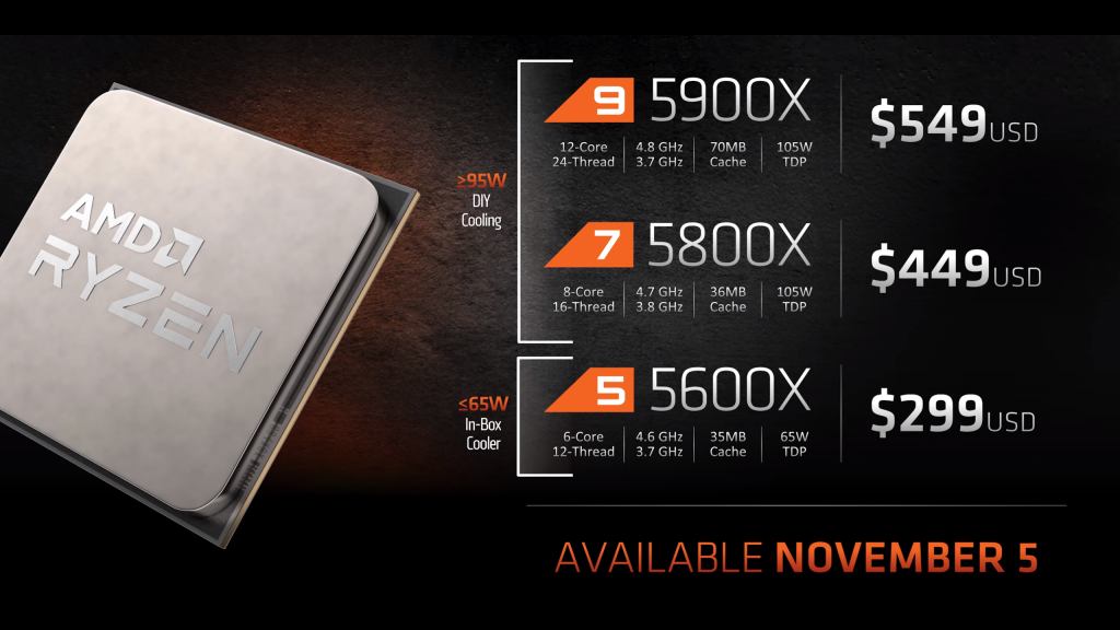 - AMD Ryzen 9 5900X: 3.7 GHz Base, 4.8 GHz Boost