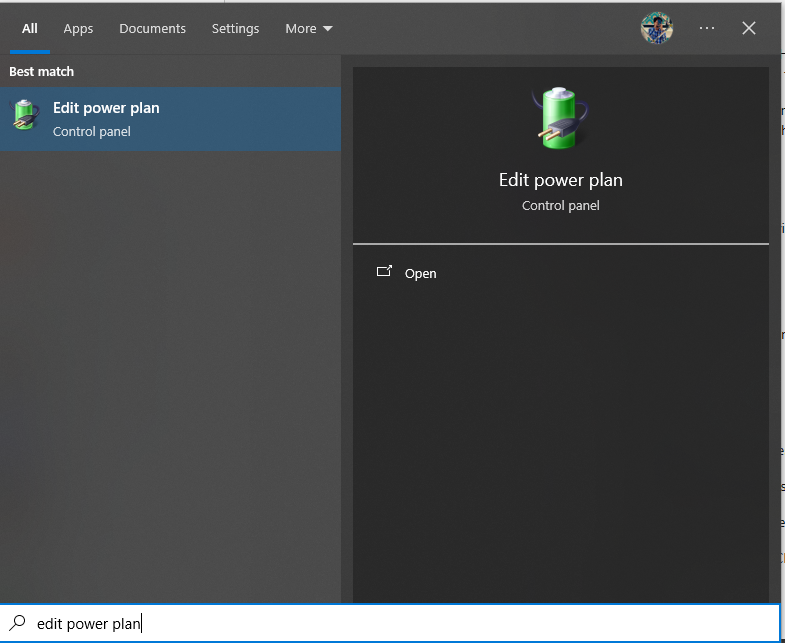 - Press the Search box and search Edit Power Plan and open it.
