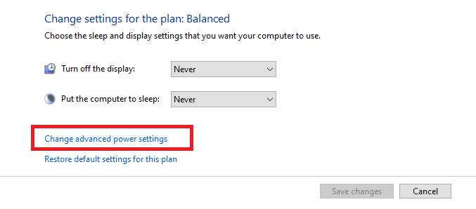 - Select Change advanced power settings.