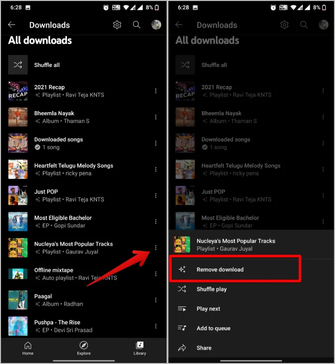 - Go to your downloaded songs or playlists.