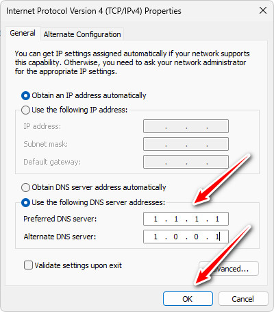 2. Switch DNS to Cloudflare (1.1.1.1)