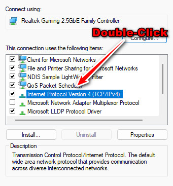 - Double-click Internet Protocol Version 4 (TCP/IPv4).