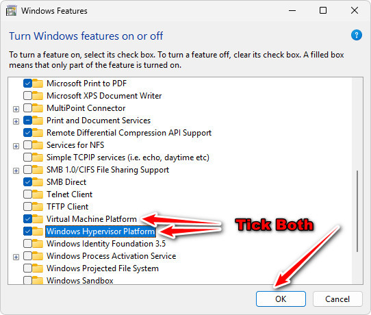 1. Enable Virtual Machine Platform & Windows Hypervisor Platform