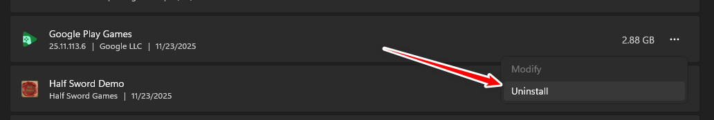 If Google Play Games was previously installed while virtualization was disabled or a network interruption occurred, some components may become incomplete or corrupted. A clean reinstall forces the installer to rebuild required files properly.