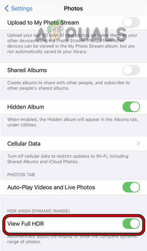 8. Disable ‘View Full HDR’ in the Photos App