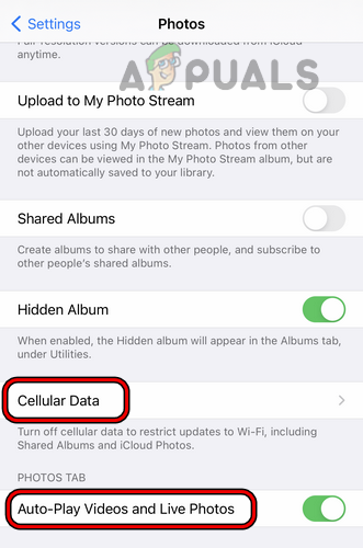 Disable Cellular Data and Auto-Play Videos and Live Photos in the iPhone Settings - Restart the iPhone, re-enable the previously disabled settings, and verify if the photo/video loading error is resolved.