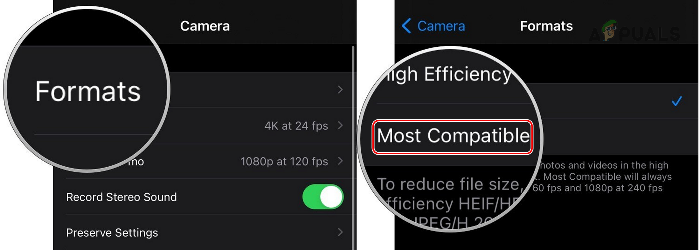 Set Camera Formats to Most Compatible in the iPhone Settings - Return to the previous menu and disable Smart HDR.