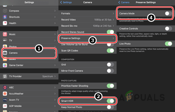 Disable Smart HDR and Enable Camera Mode of Preserve Settings of the iPhone - Open Preserve Settings and turn on Camera Mode.