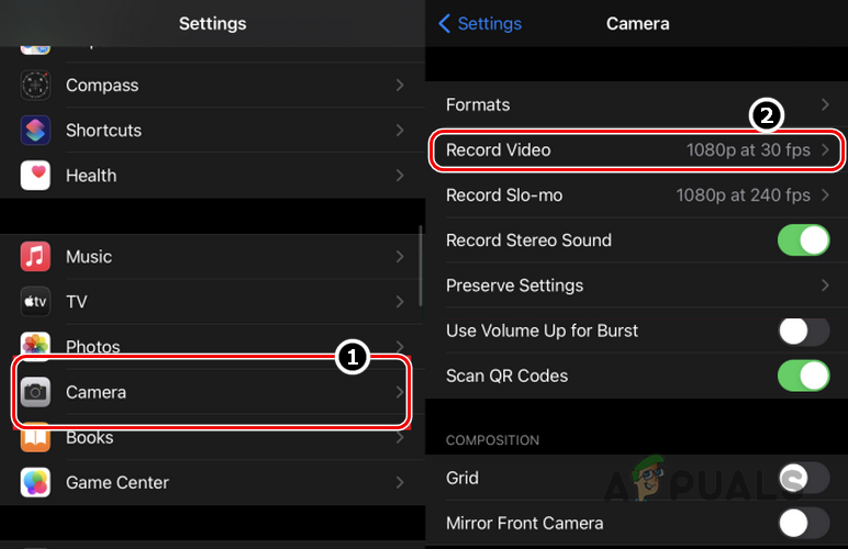 - If the issue persists, modify Record Video to 4K at 60 FPS or 1080P HD at 30 FPS to determine if it resolves the error.
