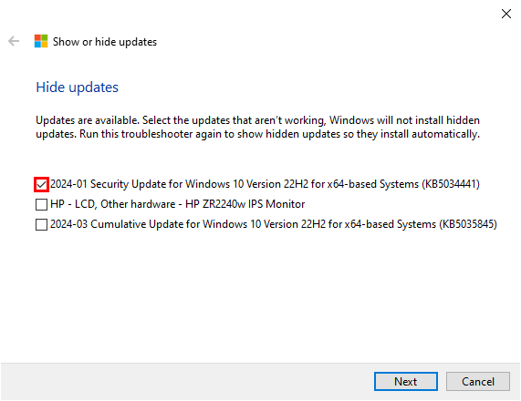 If the earlier solutions didn’t help, the update may not be compatible with your device. Sometimes, Microsoft accidentally releases an update for devices that don’t need it. In this situation, you can temporarily hide the update using Microsoft’s official Show or hide updates tool.