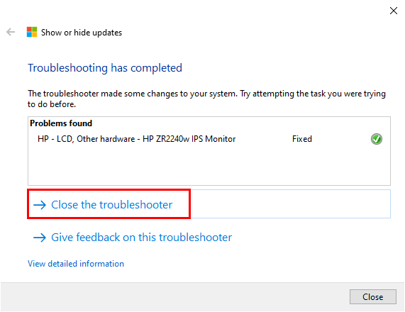 - The tool will hide the selected updates. When it’s done, you’ll see a summary of the updates that have been hidden.