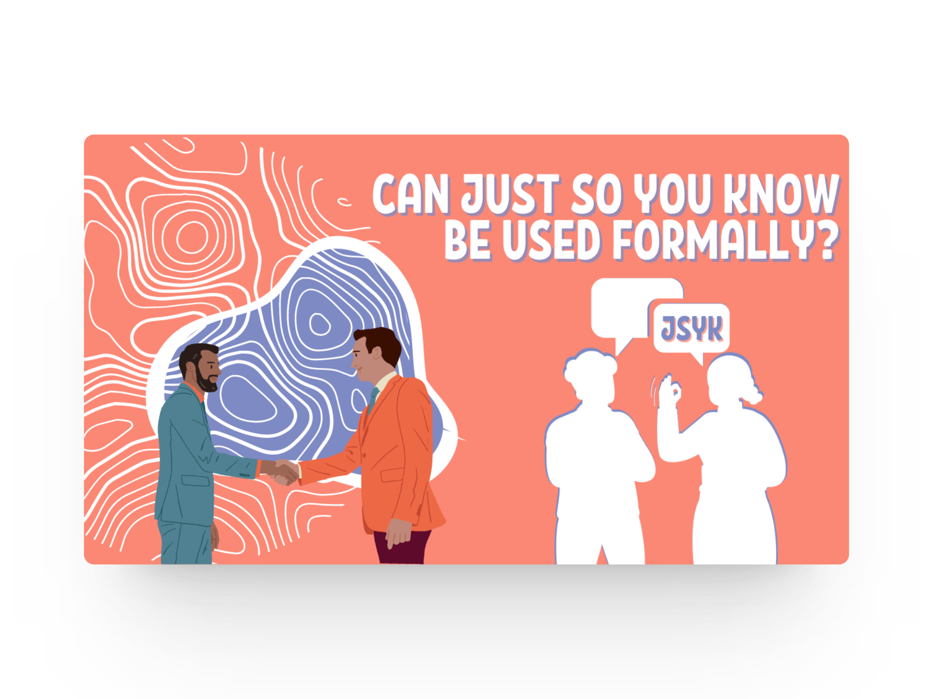 - In formal settings, alternatives like "For Your Information" or "Allow Me To Clarify" are preferred over "Just so you know."