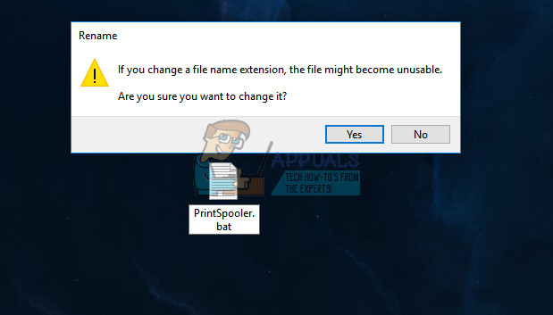 - Rename the file by changing ‘.txt’ to ‘.bat’. If you see a pop-up warning, simply click Yes.