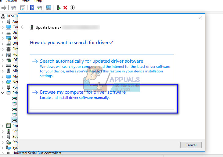 - Windows will ask how you want to search for drivers. Choose the option “Browse my computer for driver software.”