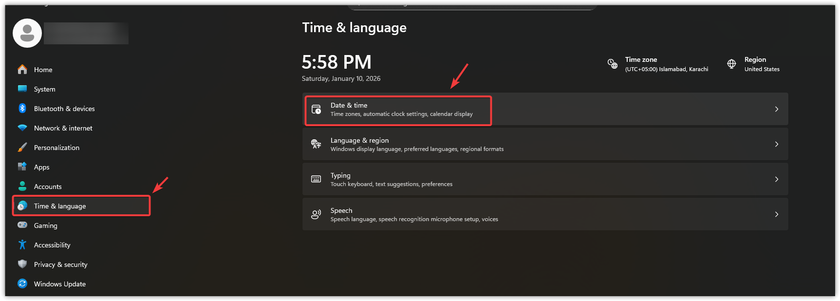 - Open Settings → Time & Language.