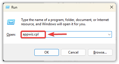 - Press Windows + R, type appwiz.cpl, then press Enter.