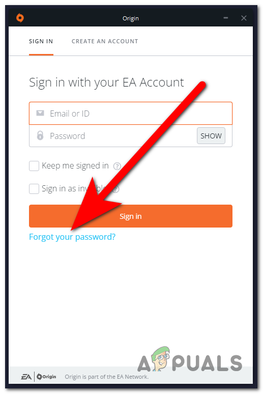 To reset your password, you can do this from the Origin sign-in screen. Click on the Forgot your password button and type your email address in the dedicated section. Now you need to follow the on-screen instructions to complete the password recovery process.