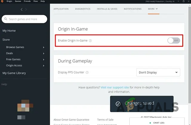 - Turn off the Origin in-game overlay with the slider.
