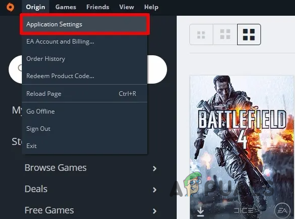 - Click the Origin menu in the top-left, then select Application Settings.