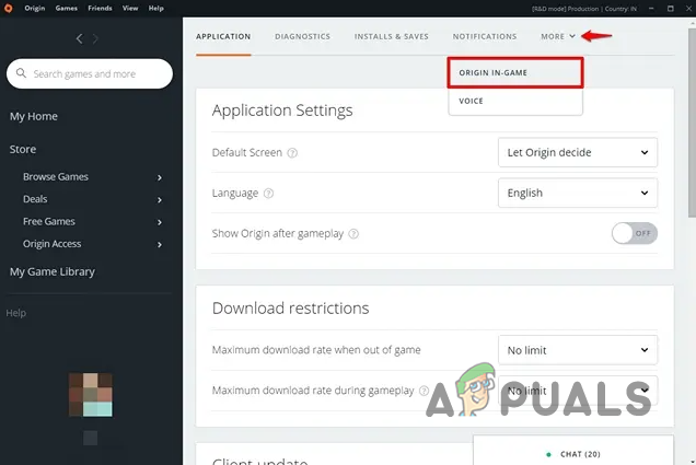 - Click the More drop-down menu to the right and go to Origin In-Game.