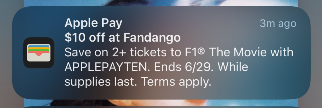 This weekend, Apple is launching one of its biggest Apple TV+ movie projects in a Formula 1 movie starring Brad Pitt. However, earlier today, the company went a step further in marketing the film when it pushed an Apple Pay promotional offer via the Apple Wallet app.