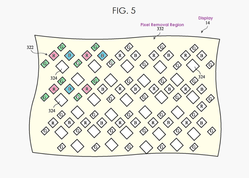 The patent describes how these patches are strategically placed to reduce any unwanted light angles on the sensor. The patent also talks about arranging the pixels in a way that some remain in the pixel removal region, making it look seamless to the viewer.