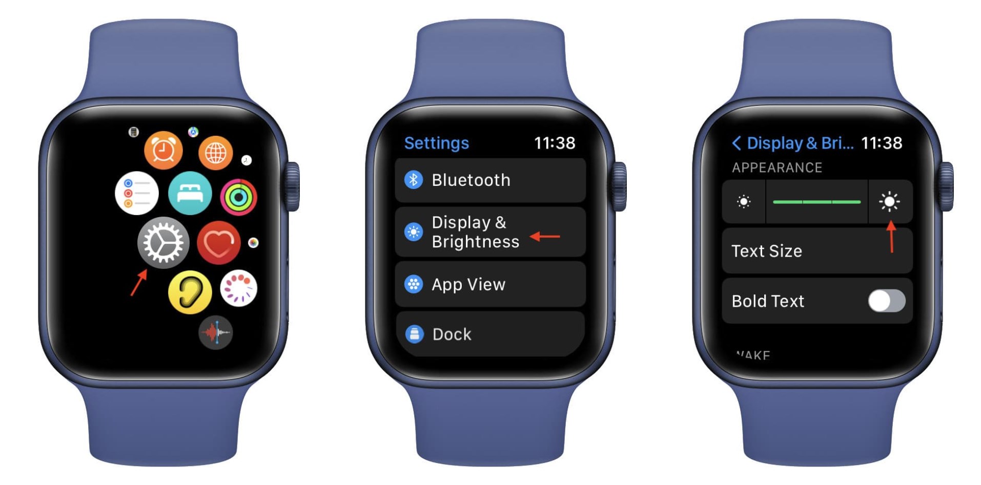 Tap on the gear icon, Settings app. - Scroll to “Display & Brightness.”