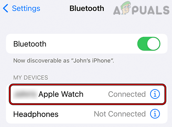 Wait Until the Apple Watch is Shown as Connected in the iPhone’s Bluetooth Settings - Monitor the Bluetooth settings on the iPhone, and once it indicates that the Apple Watch is connected, switch to the My Watch app.