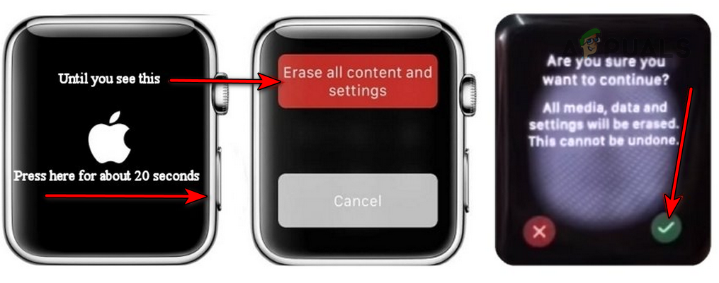 Hard Reset the Apple Watch - Release the buttons when the Apple logo appears.