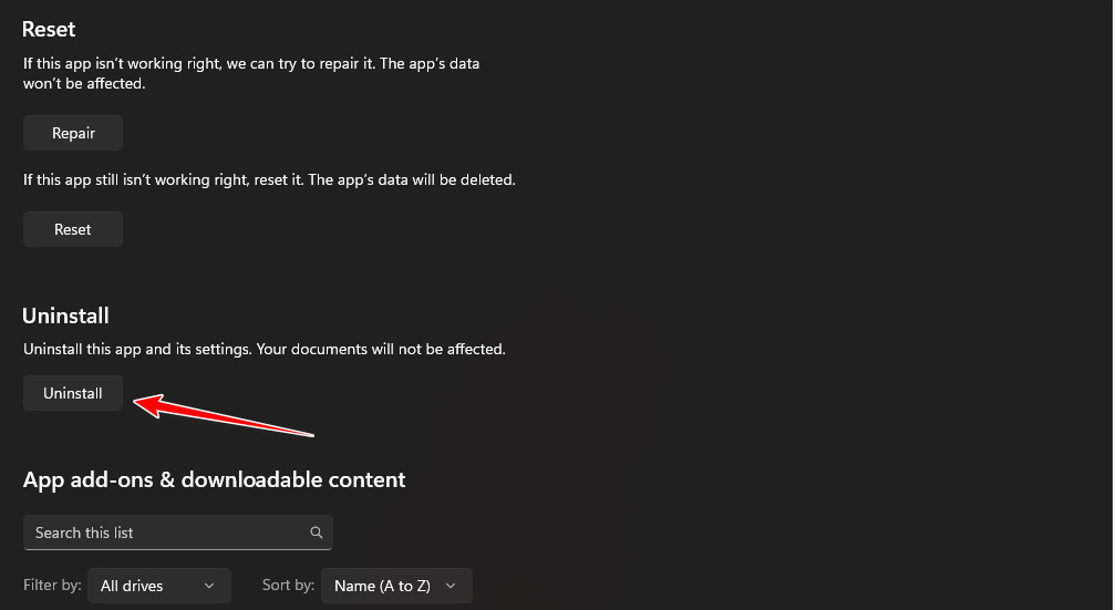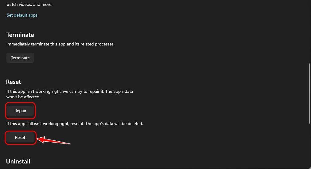 - If resetting doesn’t work, uninstall and reinstall the app through the Apps & Features menu.