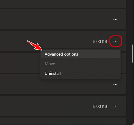 Find the app causing the issue. - Click on the app and select Advanced options.