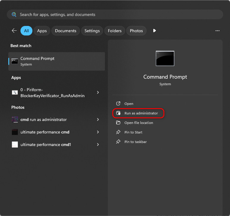 - Press Win + S, type CMD, and select “Run as administrator” to open Command Prompt.