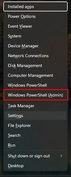 Win + Xand select Command Prompt (Admin) or Windows PowerShell (Admin) to open with administrator rights.