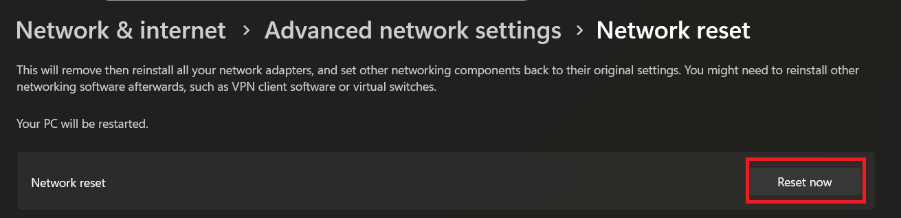 Note: This can remove saved Wi-Fi networks and reset network adapters, so you may need to reconnect to your internet afterward.