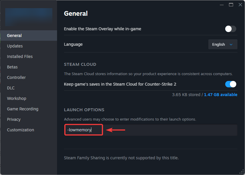 - In the General tab, locate Launch Options.