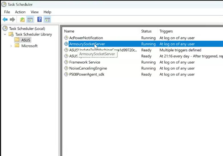 2. Go to Task Scheduler Library > ASUS.