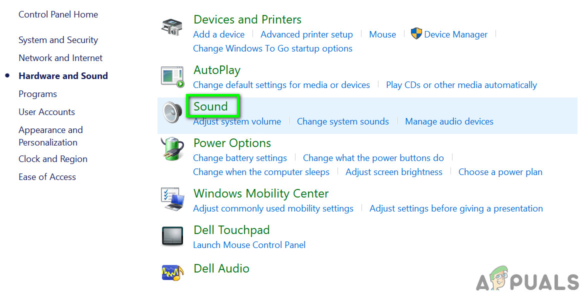 Launch the Control Panel - Then open Hardware and Sound.