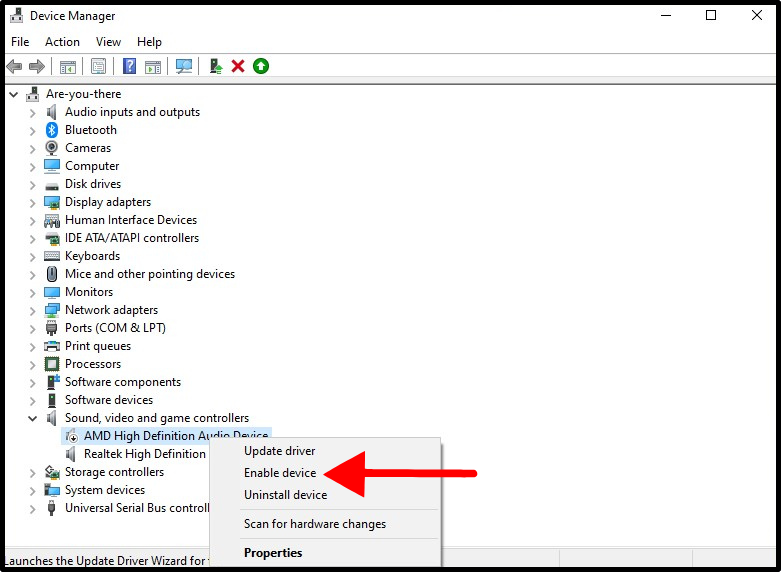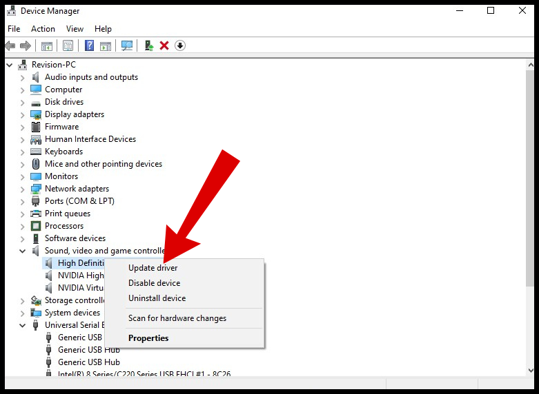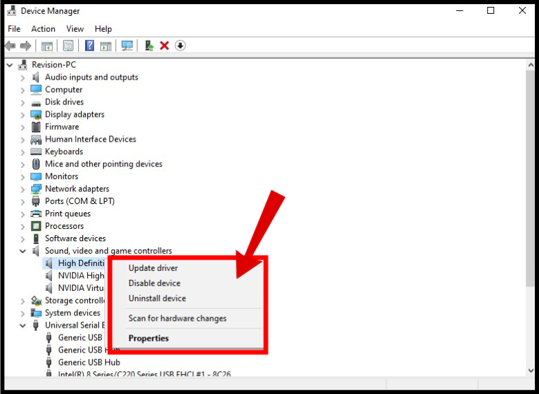 Double-click to expand - Find your audio driver, right-click on it, and a menu will appear.
