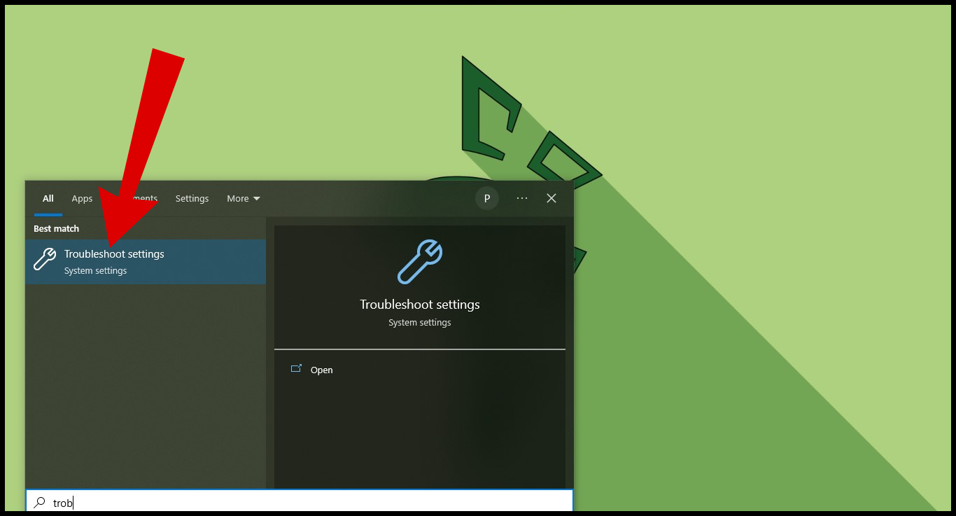 - Click the Windows Search bar and search for “Troubleshooting settings“.