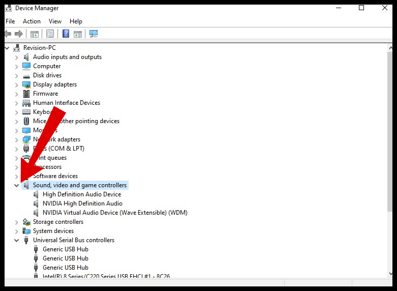 Type Device Manager - Look for “Sound, video, and game controllers” and double-click to expand it.
