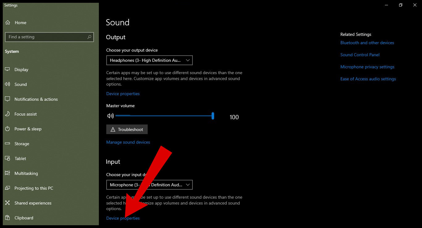 Click on Device properties - On the right, find the Related Settings section and click Additional device properties.
