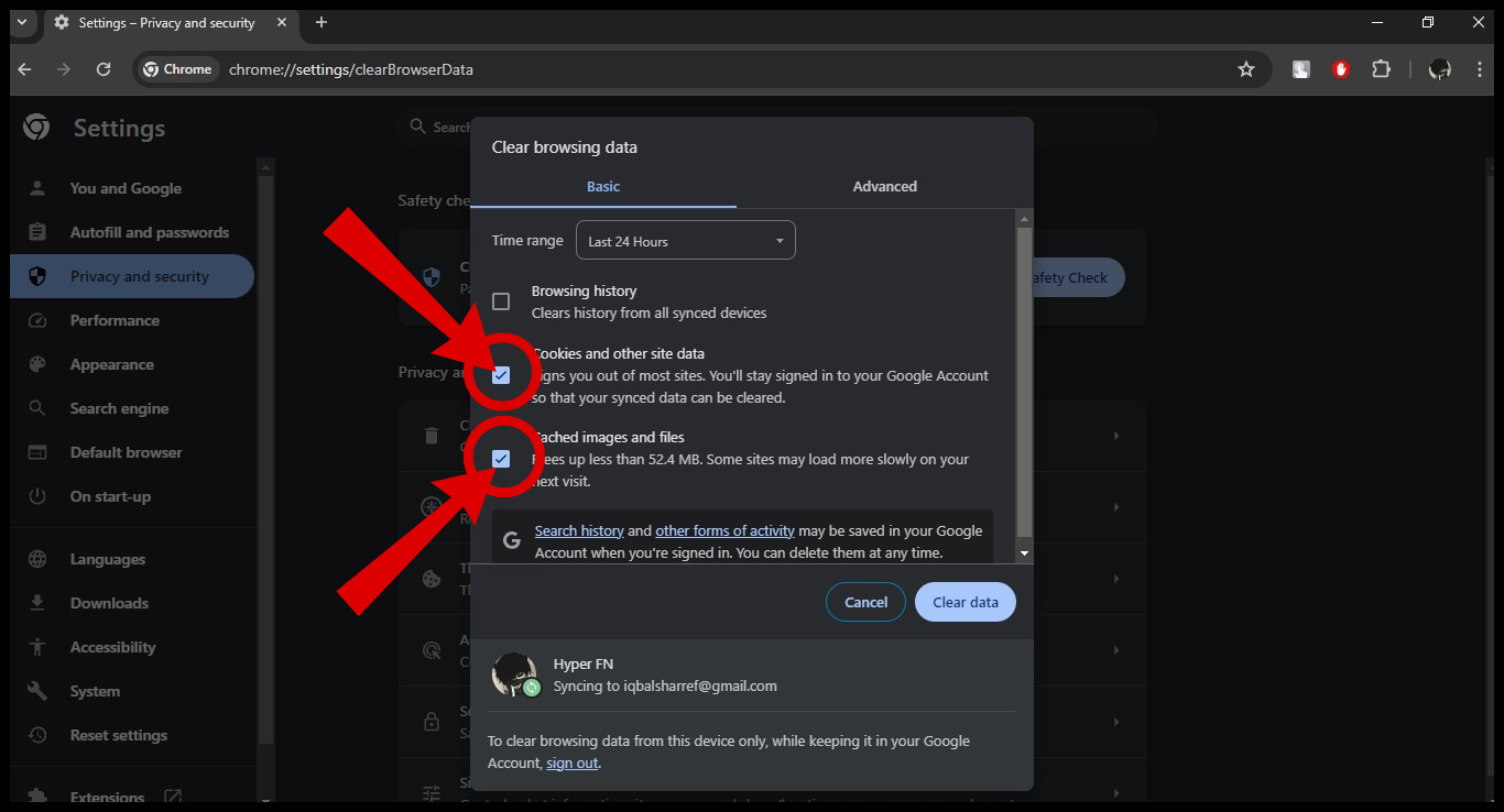 Check the two boxes - Finally, click Clear data and you’re all set.