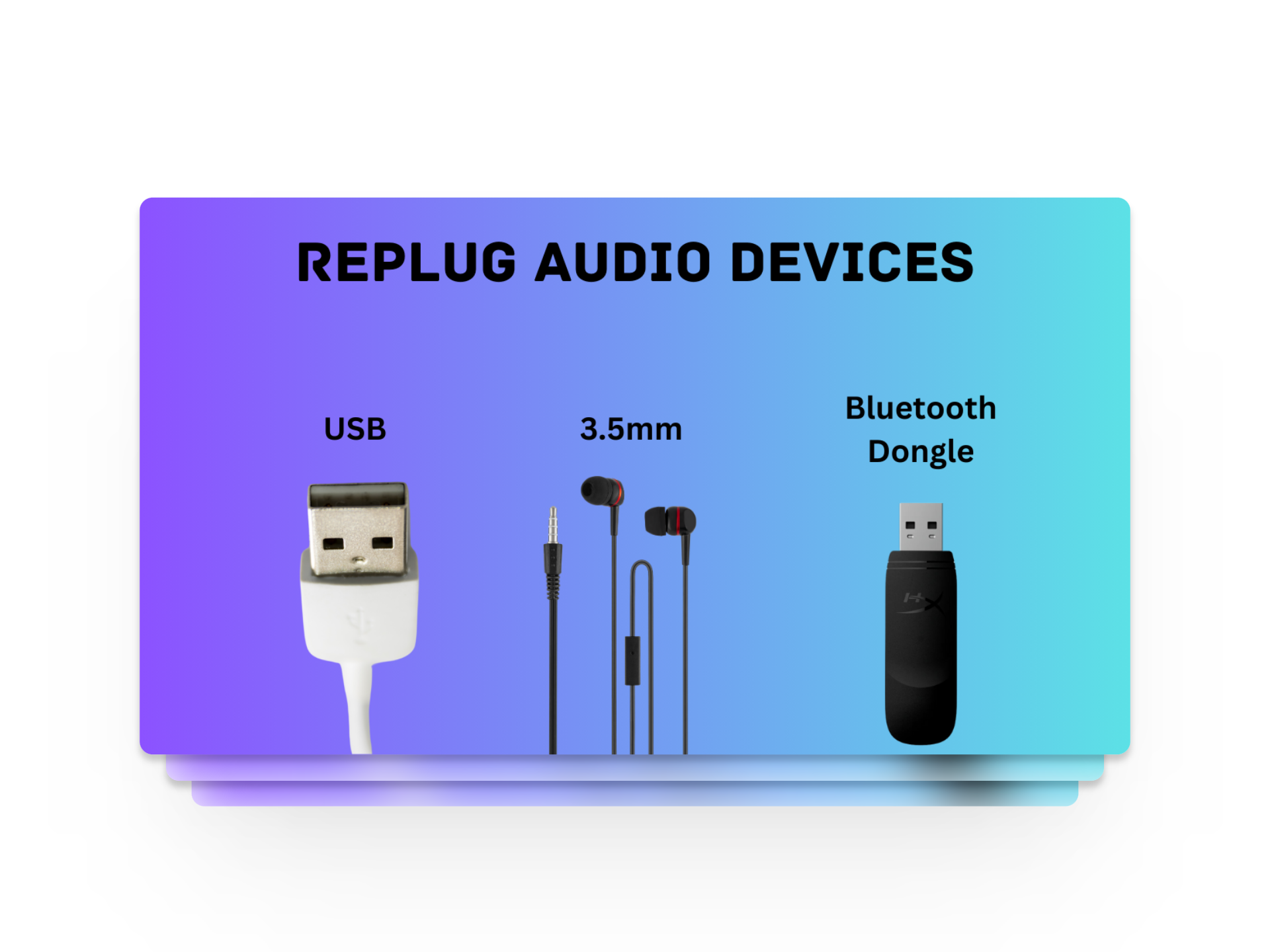 After restarting, the next simplest solution is to replug your audio devices. Whether you use USB headphones, a headphone jack, or a wireless device, unplug them, wait a few seconds, and plug them back in. After that, try restarting your computer once more and check YouTube again to see if the problem is resolved.